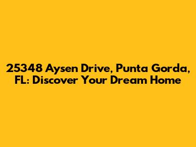 Hey guys! Are you looking for a slice of paradise in sunny Florida? Well, buckle up because we're diving deep into 25348 Aysen Drive, Punta Gorda, FL. This isn't just an address; it's a gateway to a lifestyle filled with sunshine, relaxation, and maybe even a little bit of adventure. Whether you're a seasoned Floridian or dreaming of escaping the snow, this guide will give you the lowdown on everything this property and its surrounding neighborhood have to offer.