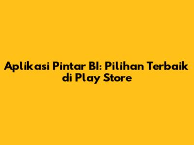 Aplikasi Pintar BI: Pilihan Terbaik Di Play Store