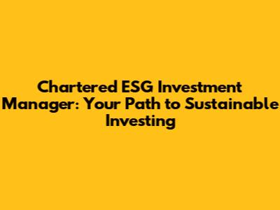 Chartered ESG Investment Manager: Your Path To Sustainable Investing