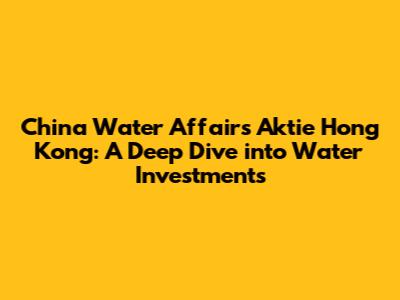 Hey there, finance enthusiasts! Ever thought about where the future of investment lies? Well, let's dive into something pretty crucial: water. Yeah, that stuff we drink, use, and, well, can't really live without. Today, we're zeroing in on China Water Affairs (CWA), the Hong Kong-listed stock that's making waves (pun intended!) in the water industry. We will discuss everything you need to know about China Water Affairs Aktie Hong Kong.