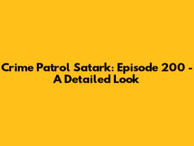 Hey everyone! Crime Patrol Satark, as you all know, is a staple for anyone interested in crime dramas. The show's 200th episode, a milestone, really caught my attention. I've taken a deep dive into it, and I'm ready to break down what made it tick. I'll be looking at the case, the storytelling, and what makes Crime Patrol Satark so engaging. Get ready for a thorough analysis, guys!