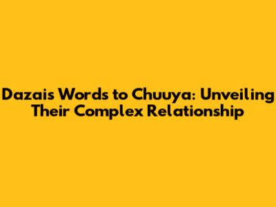 Dazai's Words To Chuuya: Unveiling Their Complex Relationship