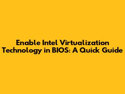 Enable Intel Virtualization Tech In BIOS: A Quick Guide