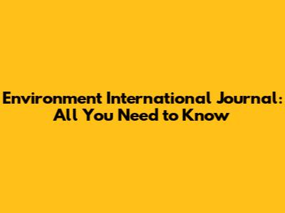 Environment International Journal: All You Need To Know