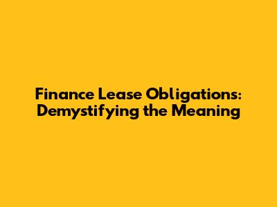 Hey guys, let's dive into the world of finance lease obligations. It sounds super official, right? But don't worry, we'll break it down into easy-to-understand bits. Basically, a finance lease is a type of lease agreement where the lessee (that's the one using the asset) essentially takes on most of the risks and rewards of owning the asset, even though they don't technically own it. Think of it like this: you're getting all the benefits of ownership without having to buy the thing outright. Now, the finance lease obligation meaning boils down to a commitment—a financial responsibility that the lessee undertakes. It’s not just about paying rent; it's about recognizing the asset on your books and the corresponding liability for the lease payments. It's a significant concept in financial accounting, so let's get into it.