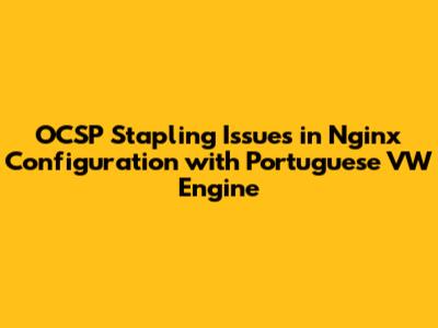 What does a Portuguese VW engine have to do with it? Honestly, not much directly! The mention here is more likely contextual – perhaps this setup is for a specific application related to VW in Portugal, or it's just a fun way to make the topic memorable. Regardless, the core principles of setting up OCSP stapling remain the same. You need to ensure your Nginx configuration is correctly set up to fetch and staple OCSP responses, and that your server can communicate with the necessary CAs. This involves checking your SSL certificate chain, configuring the ssl_stapling and ssl_stapling_verify directives, and ensuring your server can resolve the OCSP responder’s address.