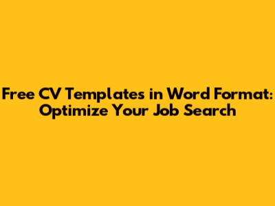 Free CV Templates In Word Format: Optimize Your Job Search