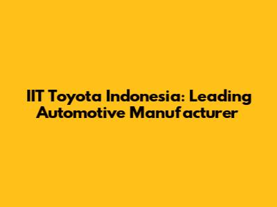 IIT Toyota Indonesia: Leading Automotive Manufacturer