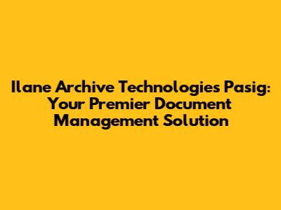 Are you looking for top-notch document management solutions in Pasig? Ilane Archive Technologies stands out as a premier provider, offering a comprehensive suite of services designed to streamline your document workflows, enhance security, and ensure compliance. In today's fast-paced business environment, efficient document management is no longer a luxury but a necessity. From small startups to large enterprises, the ability to store, retrieve, and manage information effectively can significantly impact productivity, reduce operational costs, and mitigate risks.