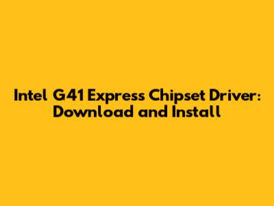 Intel G41 Express Chipset Driver: Download And Install