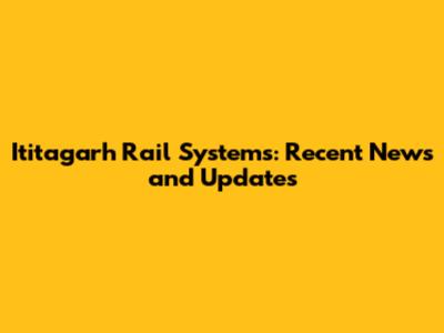 Ititagarh Rail Systems: Updates And Developments