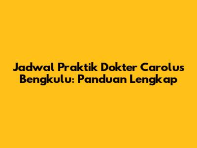 Jadwal Praktik Dokter Carolus Bengkulu: Temukan Dokter Terbaikmu!