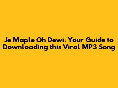 Hey guys! You're probably here because you've heard the catchy tune of "Je Maple Oh Dewi" and now you're on the hunt to download it as an MP3. Well, you've come to the right place! Let's dive into everything you need to know about this viral song and how you can get it on your device.
