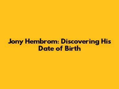 While the exact date of birth for Jony Hembrom may remain elusive, the quest to uncover this detail underscores the significance of dates in understanding a person's life and legacy. Whether you're a dedicated fan or simply curious, remember that every piece of information contributes to a more complete picture. Keep exploring, keep celebrating, and continue to honor the remarkable individuals who shape our world.