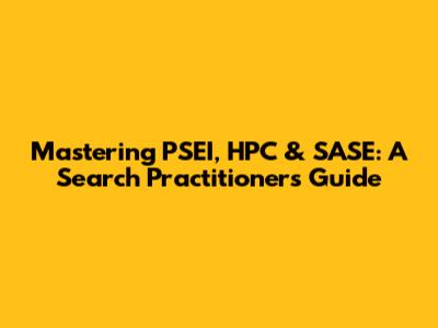 Mastering PSEI, HPC & SASE: A Search Practitioner's Guide