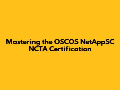 Mastering The OSCOS NetAppSC NCTA Certification