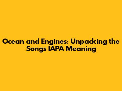 Ocean And Engines: Unpacking The Song's IAPA Meaning