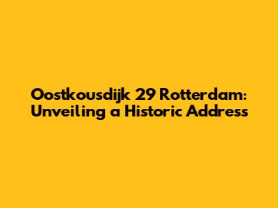 Oostkousdijk 29 Rotterdam: Unveiling A Historic Address