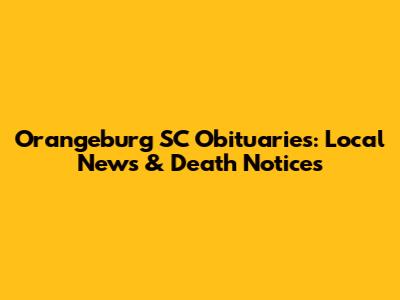 Orangeburg SC Obituaries: Local News & Death Notices