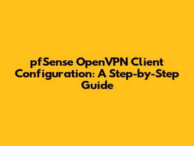 PfSense OpenVPN Client Configuration: A Step-by-Step Guide