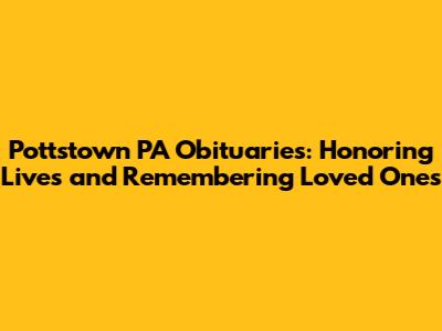 Pottstown PA Obituaries: Find Recent Death Notices & Tributes