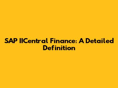 SAP IICentral Finance: A Detailed Definition