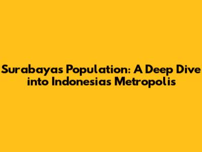 Let's dive into the bustling city of Surabaya, Indonesia, and explore its dynamic population. Surabaya, known as the "City of Heroes," is not only rich in history and culture but also stands as a major economic hub in Indonesia. Understanding the population of Surabaya gives us insights into its urban development, social structure, and future prospects. So, let's get started and uncover the details about how many people call this vibrant city home.