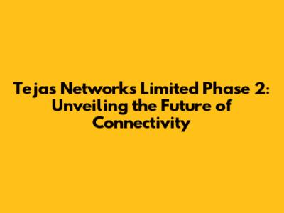 Tejas Networks Phase 2: Unveiling The Future Of Connectivity