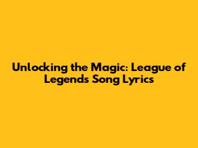 Unlocking The Magic: League Of Legends Song Lyrics