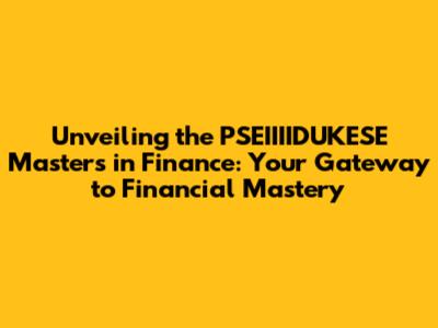 What Exactly is the PSEIIIIDUKESE Masters in Finance all about?