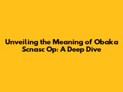 Unveiling The Meaning Of Obaka Scnasc Op: A Deep Dive