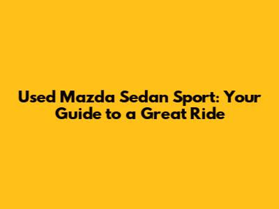 Used Mazda Sedan Sport: Your Guide To A Great Ride